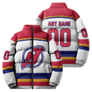 New Jersey Devils Stand Collar Puffer Jacket Custom Name And Number