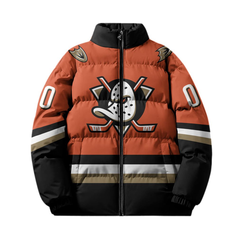 Anaheim Ducks Stand Collar Puffer Jacket Custom Name And Number