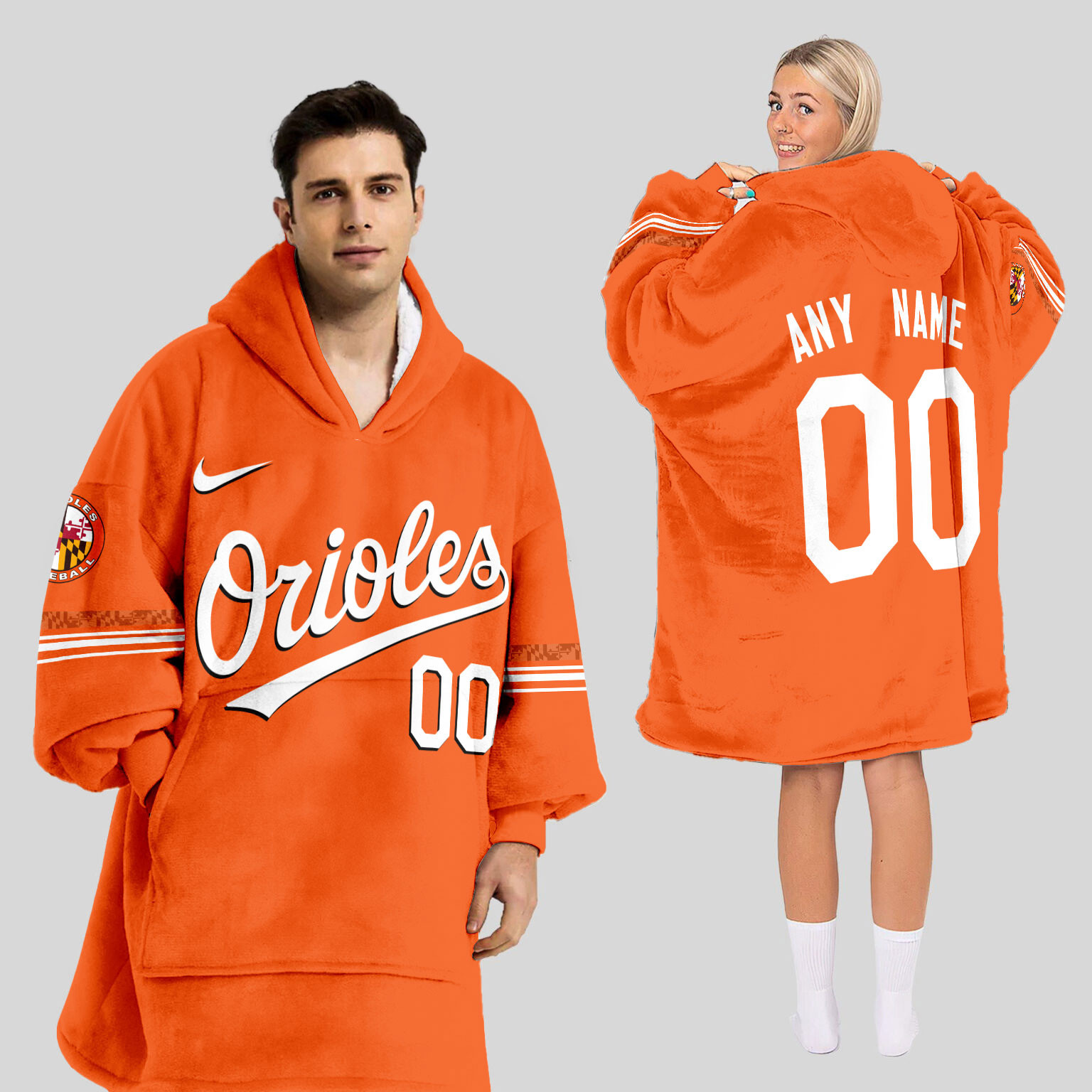 Baltimore Orioles MLB Design Blanket Hoodie Custom Name And Number