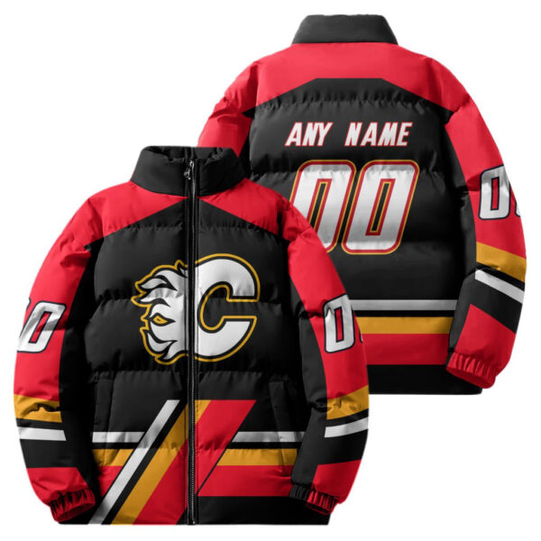 Calgary Flames Stand Collar Puffer Jacket Custom Name And Number