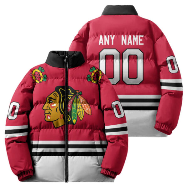 Chicago Blackhawks Stand Collar Puffer Jacket Custom Name And Number