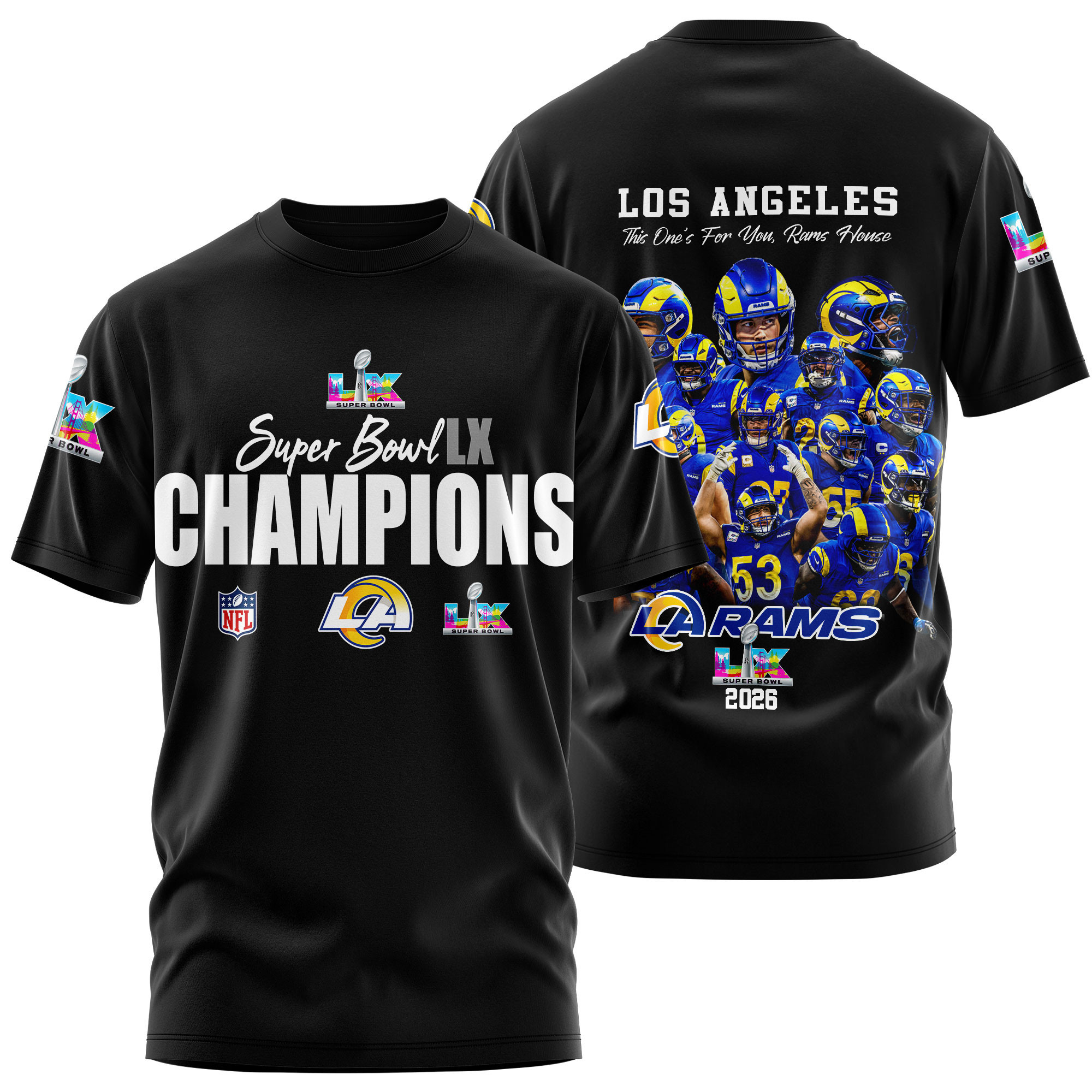 Los Angeles Rams Super Bowl LX Champions Style 3D T-Shirt