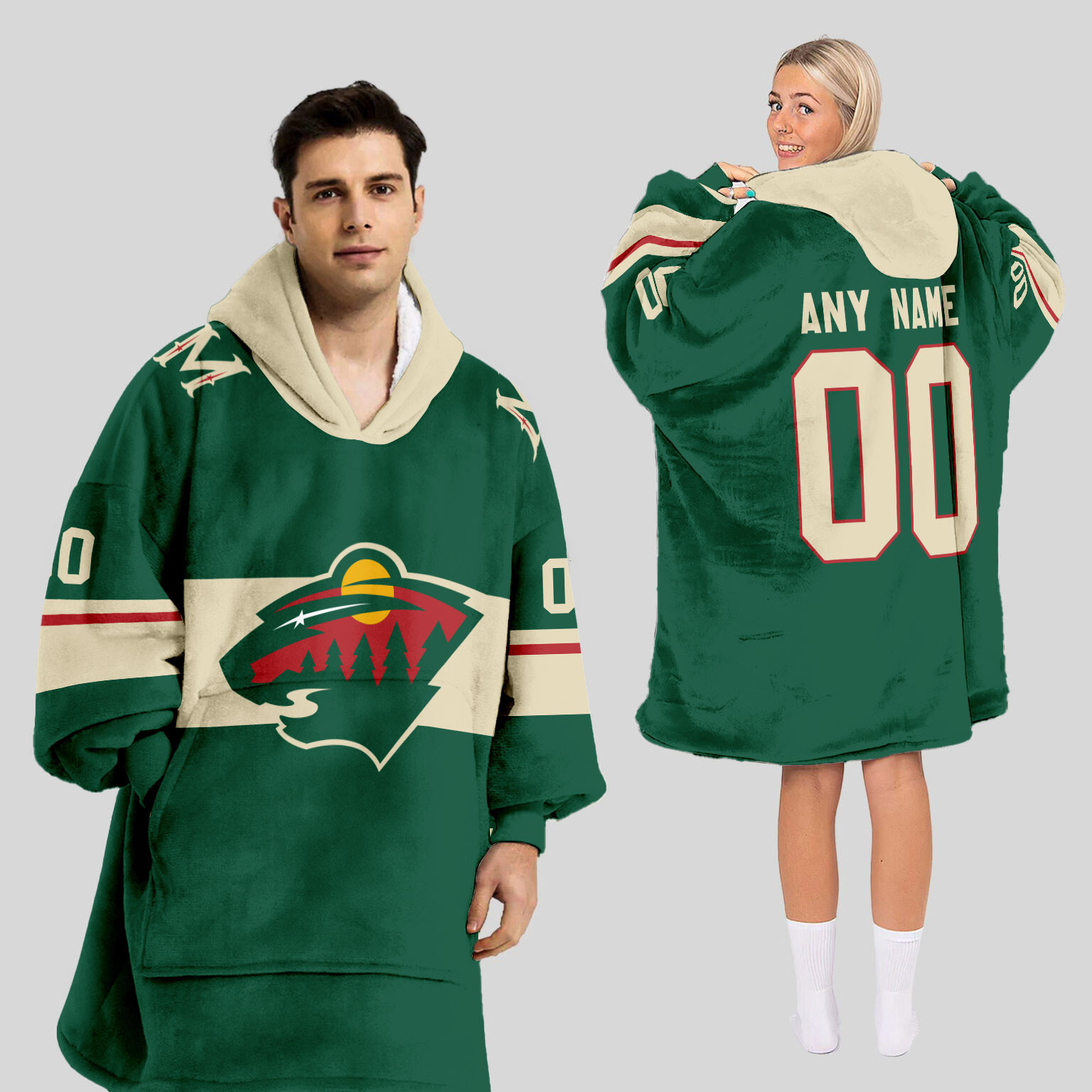 Minnesota Wild Blanket Hoodie Custom Name And Number