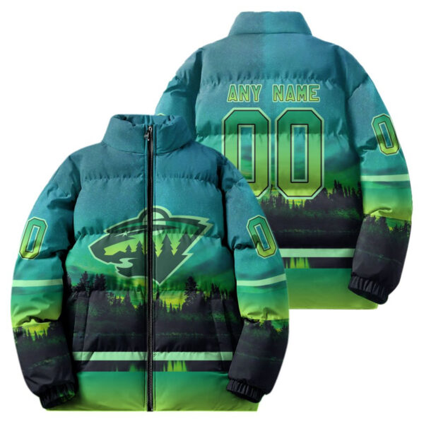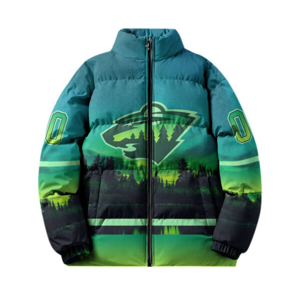 Minnesota Wild Stand Collar Puffer Jacket Custom Name And Number