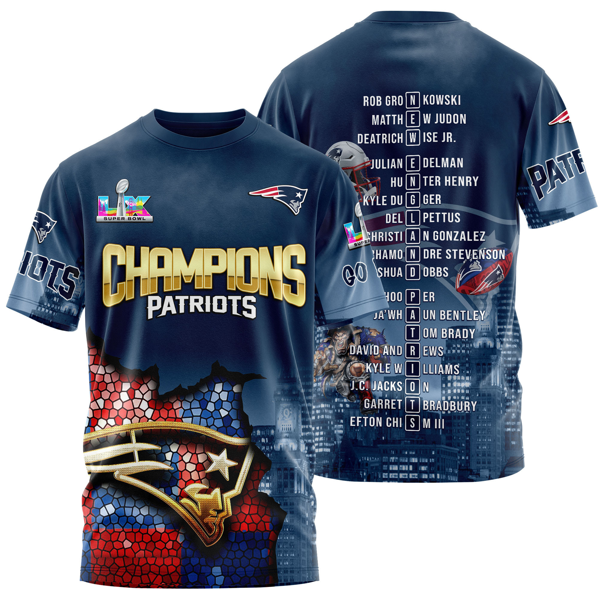 New England Patriots Super Bowl LX Champions Style 3D T-Shirt