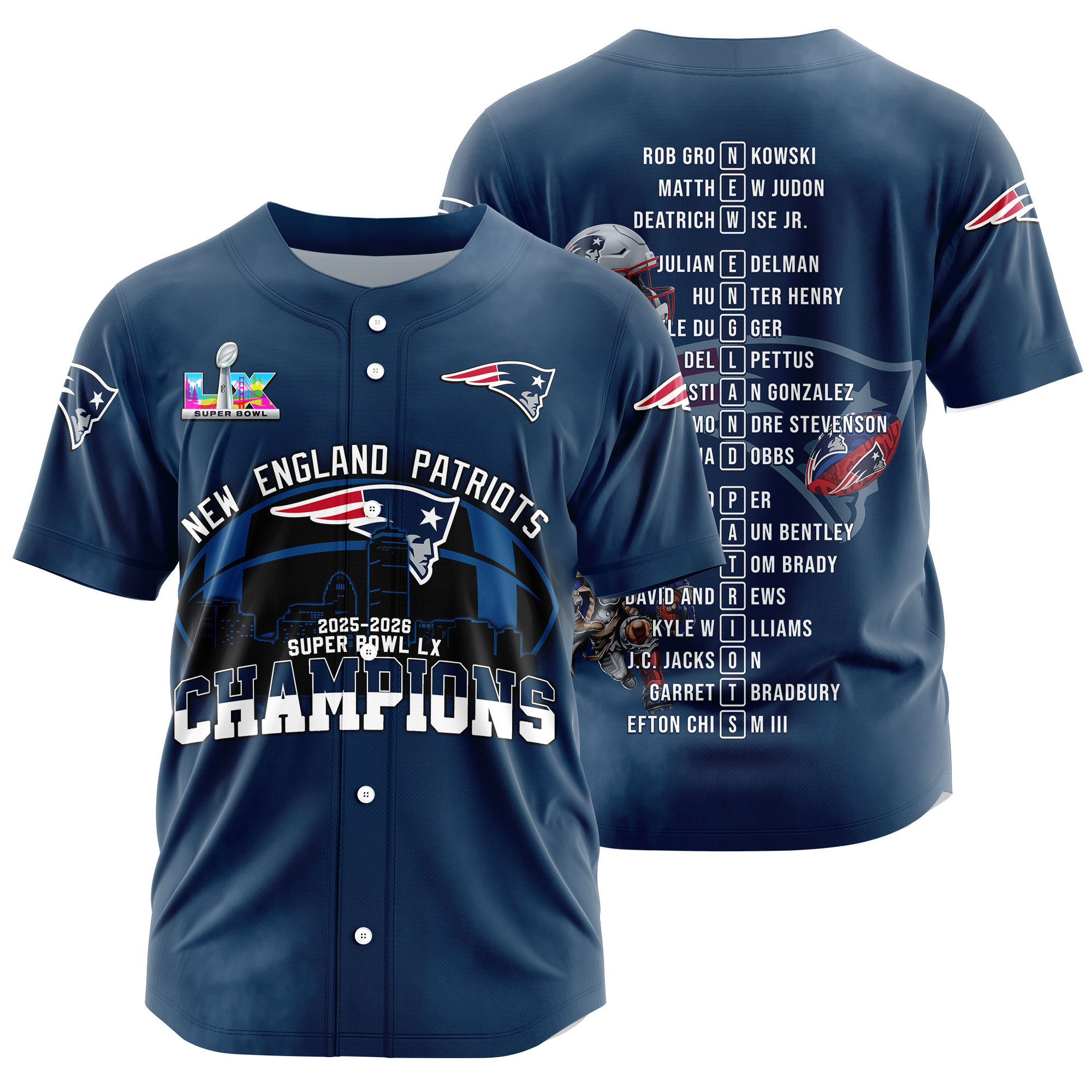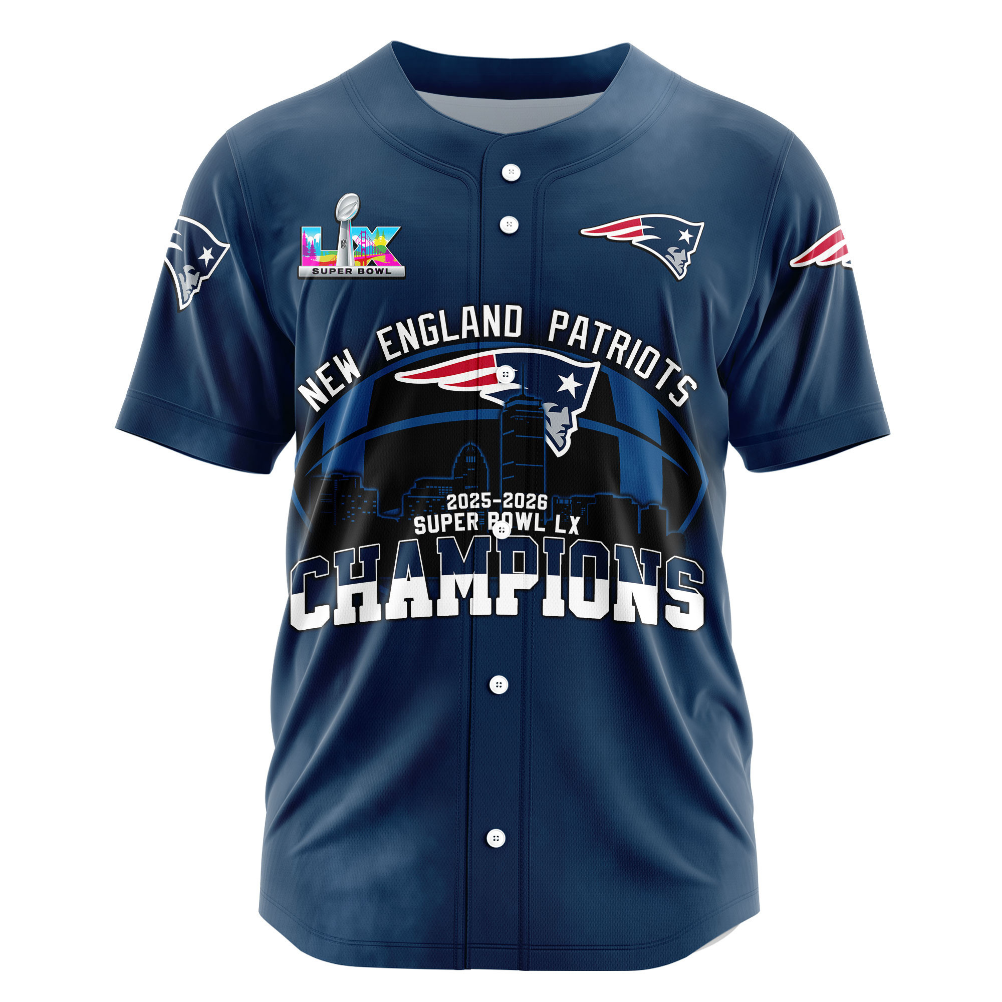 New England Patriots Super Bowl LX Champions Style Baseball Jersey