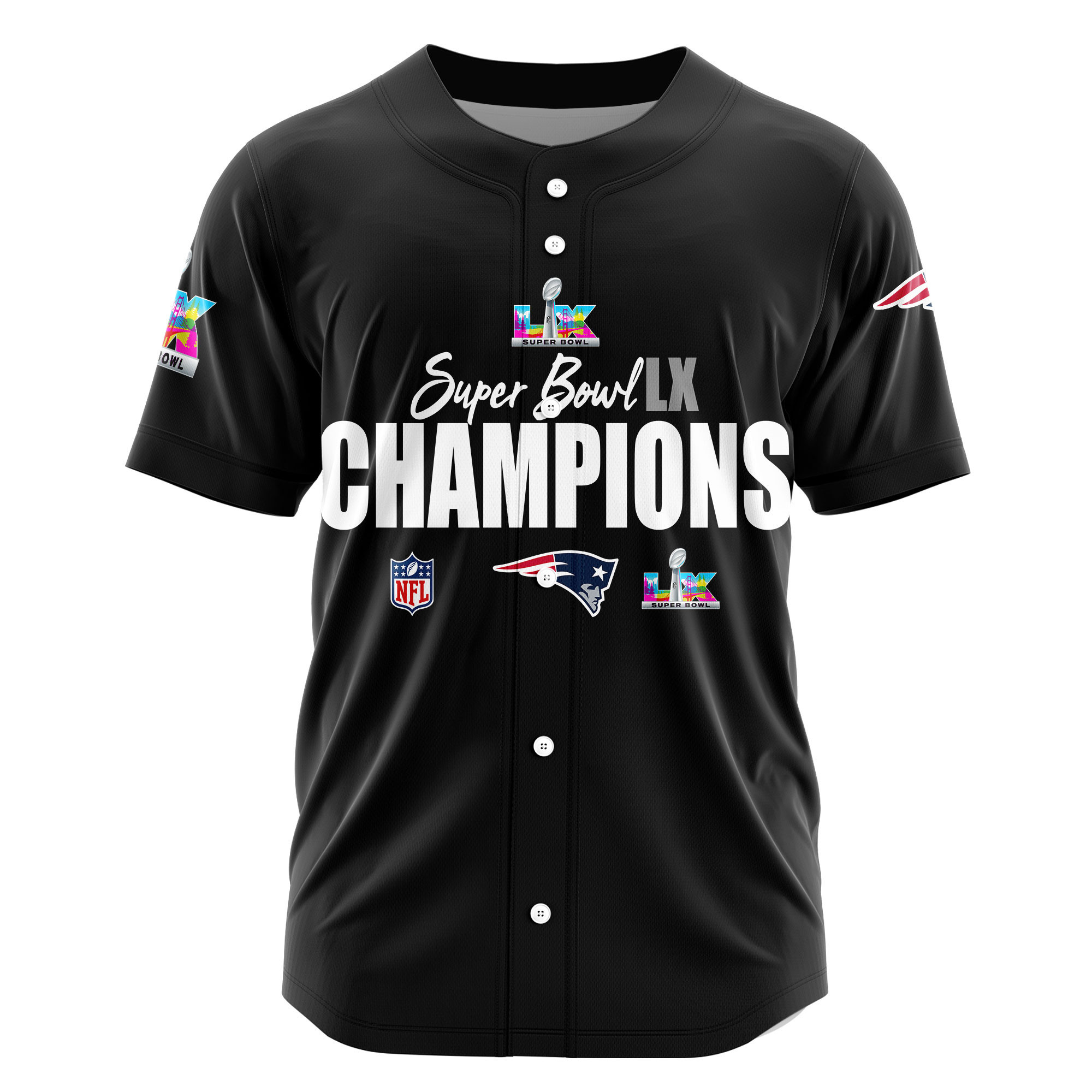 New England Patriots Super Bowl LX Champions Style Baseball Jersey