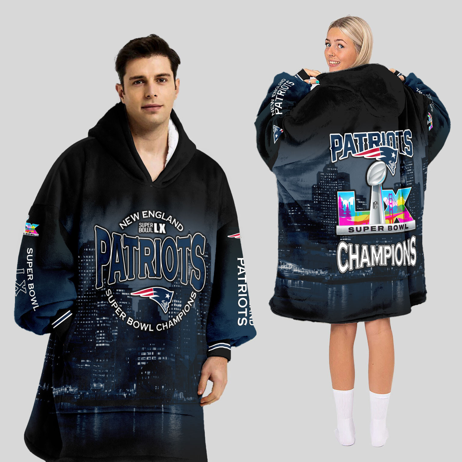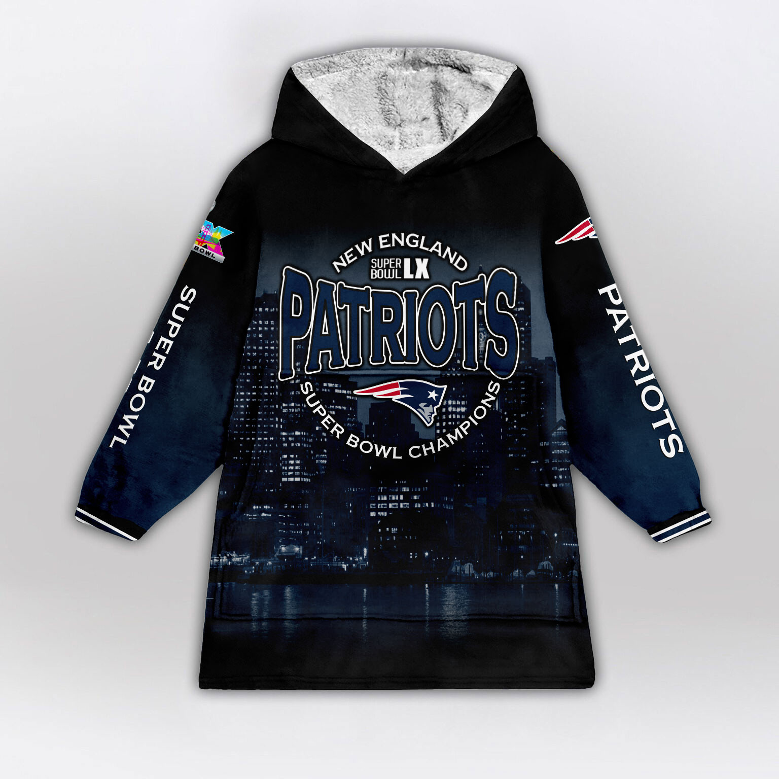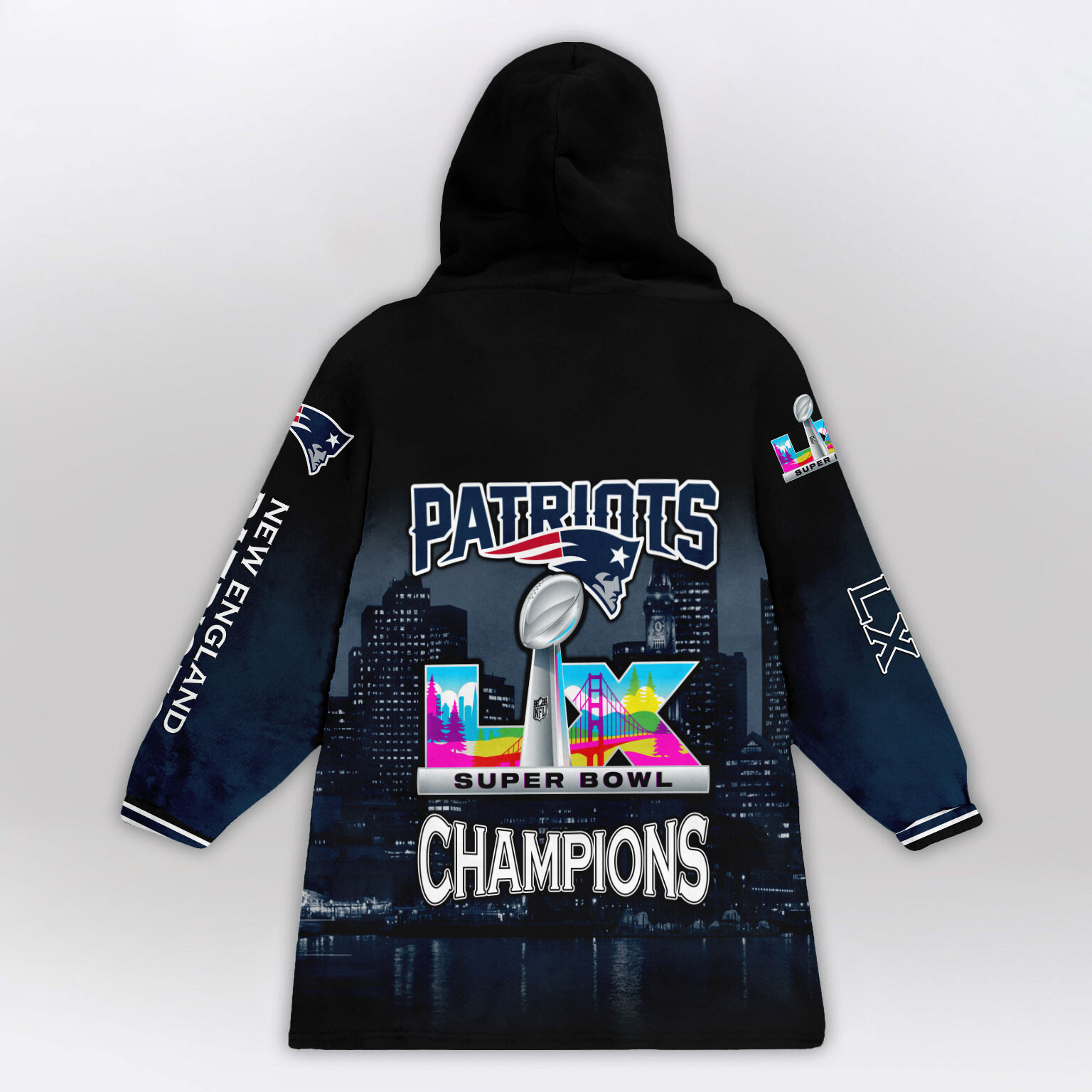 New England Patriots Super Bowl LX Champions Style Blanket Hoodie