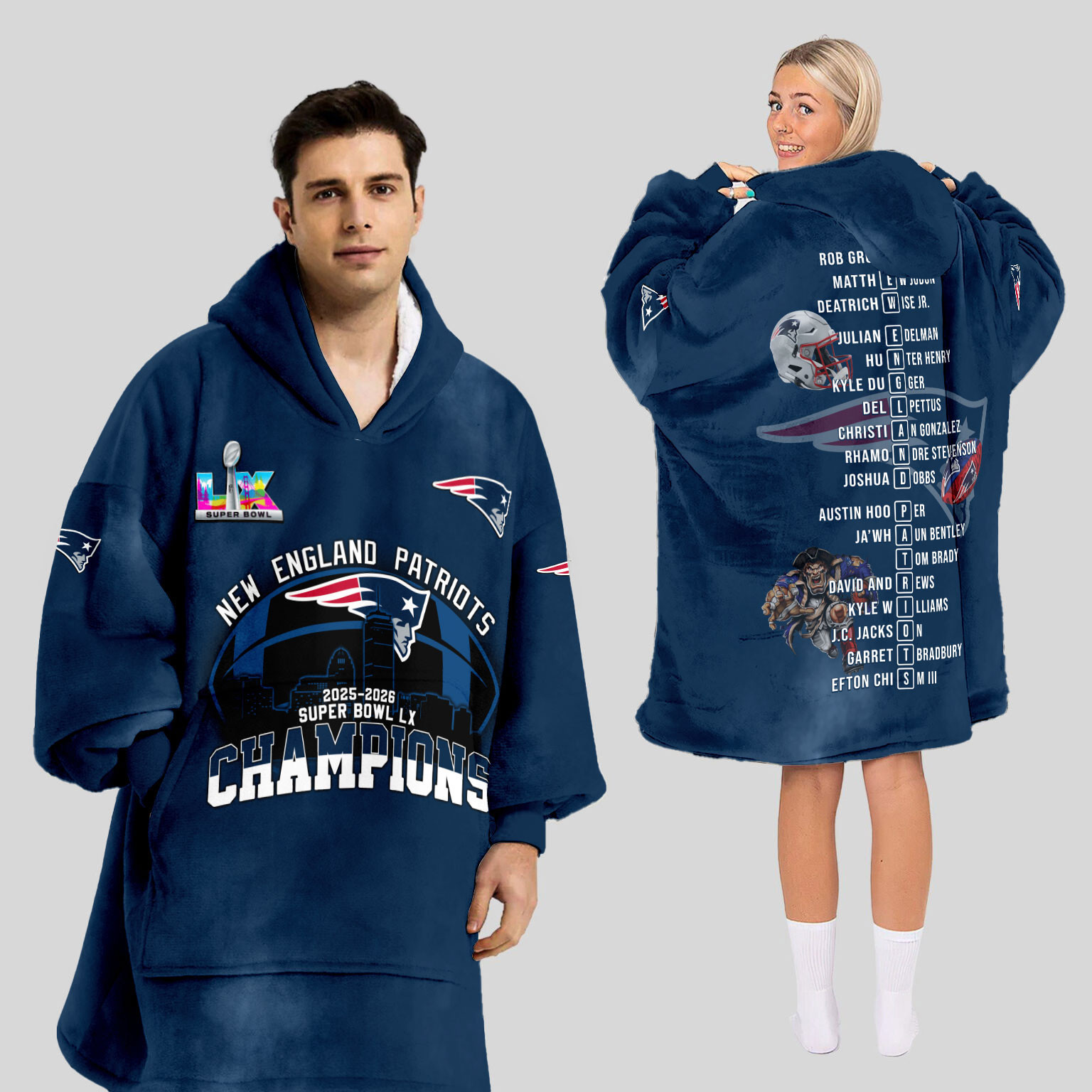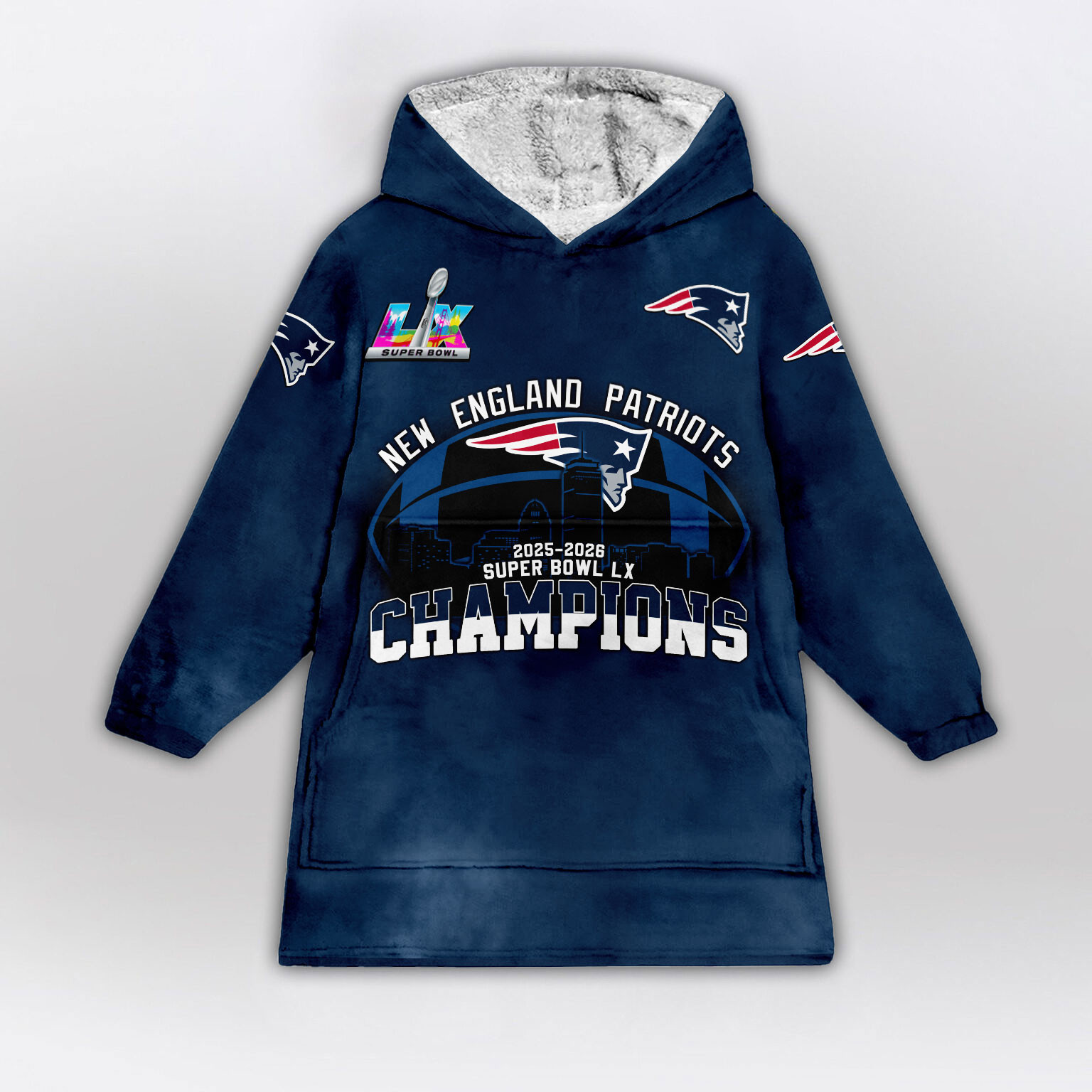 New England Patriots Super Bowl LX Champions Style Blanket Hoodie