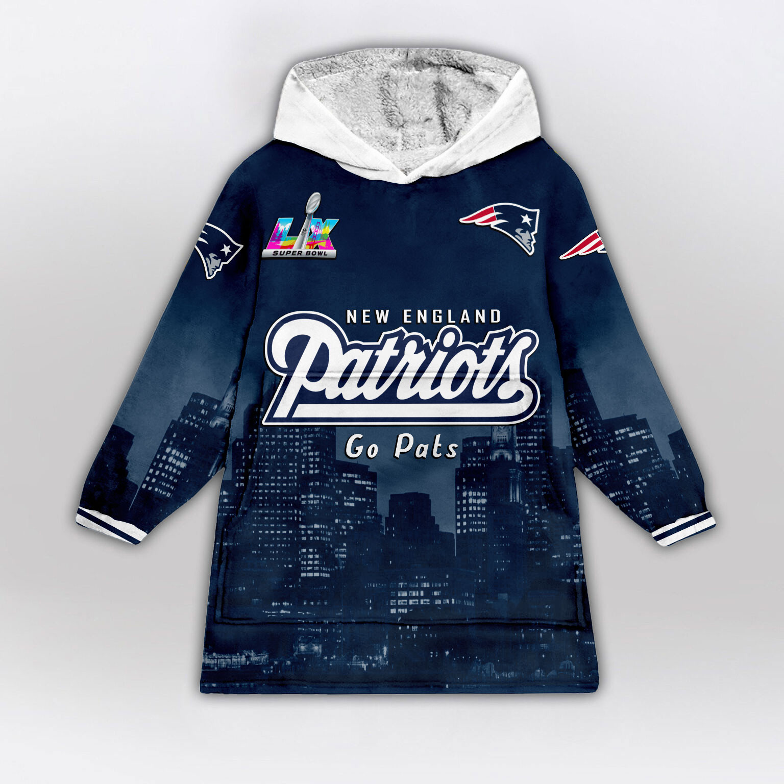 New England Patriots Super Bowl LX Champions Style Blanket Hoodie
