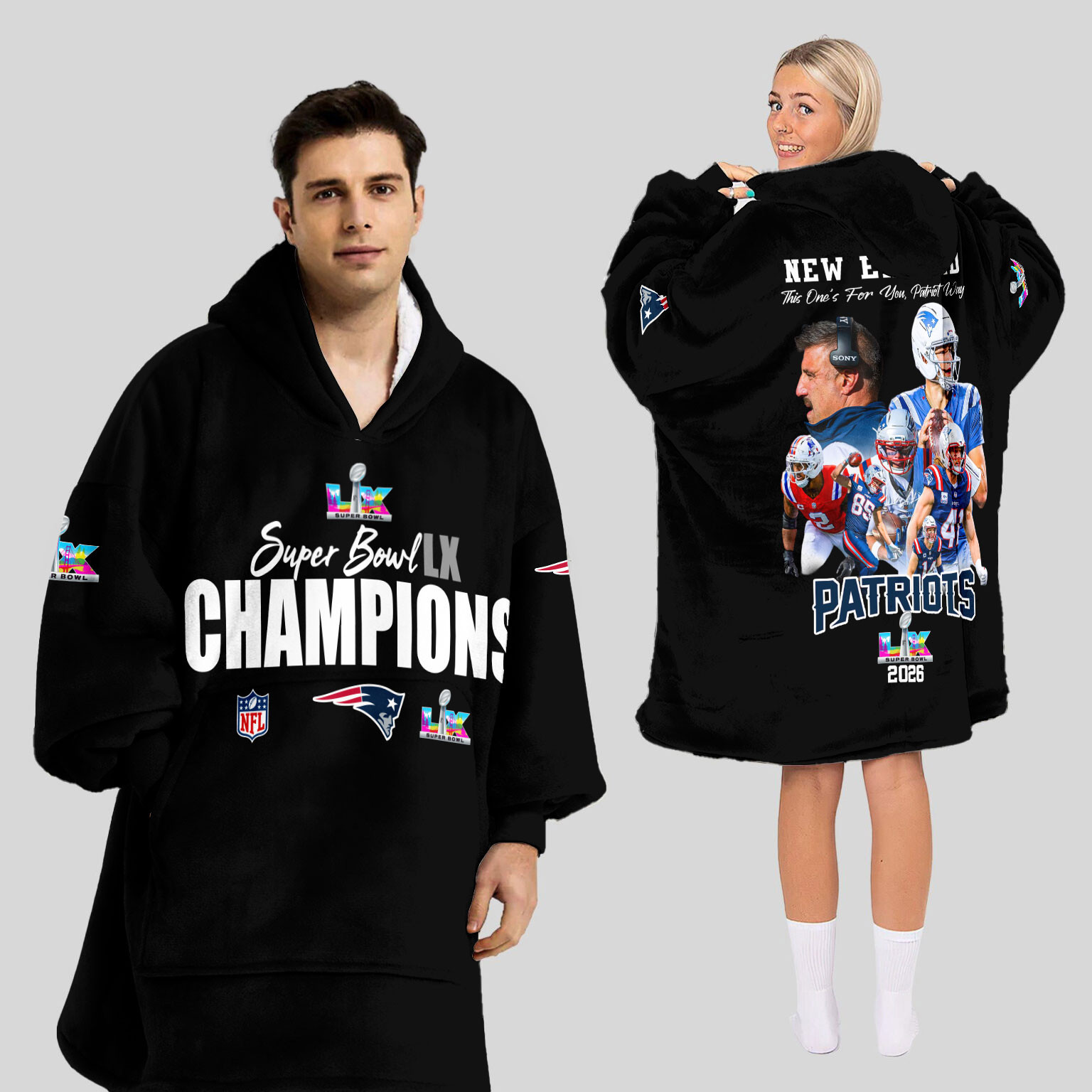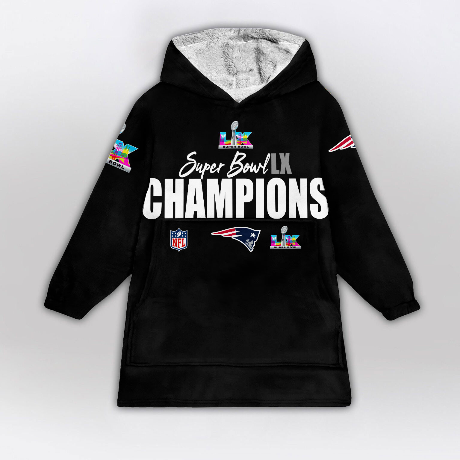 New England Patriots Super Bowl LX Champions Style Blanket Hoodie