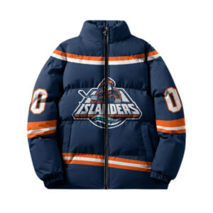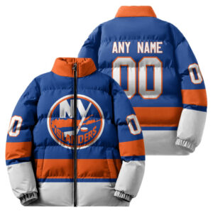 New York Islanders Stand Collar Puffer Jacket Custom Name And Number