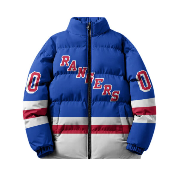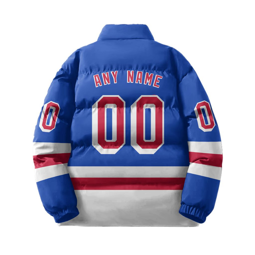 New York Rangers Stand Collar Puffer Jacket Custom Name And Number