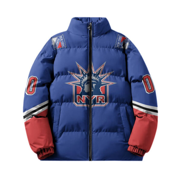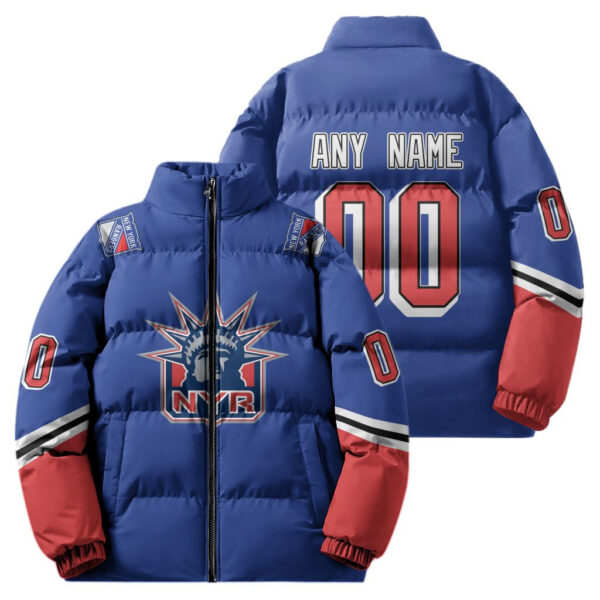 New York Rangers Stand Collar Puffer Jacket Custom Name And Number