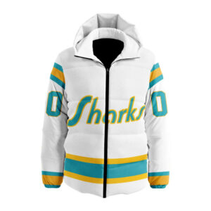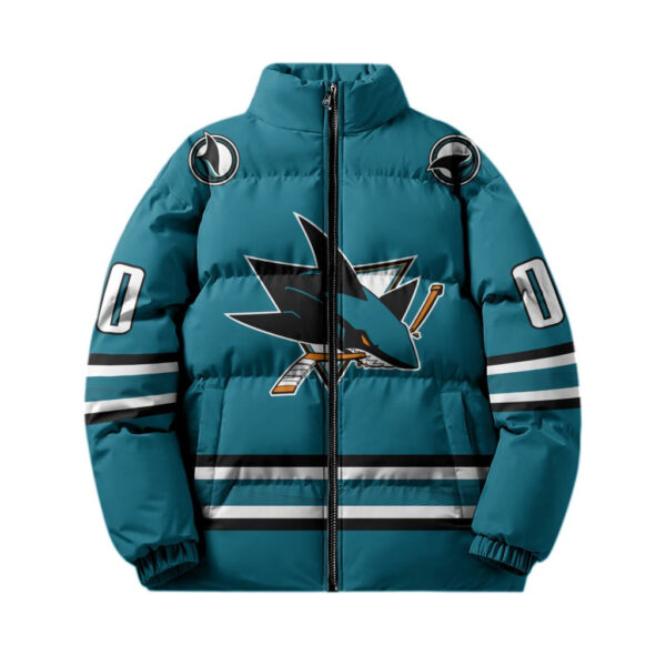 San Jose Sharks Stand Collar Puffer Jacket Custom Name And Number