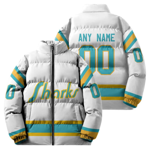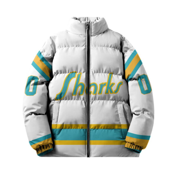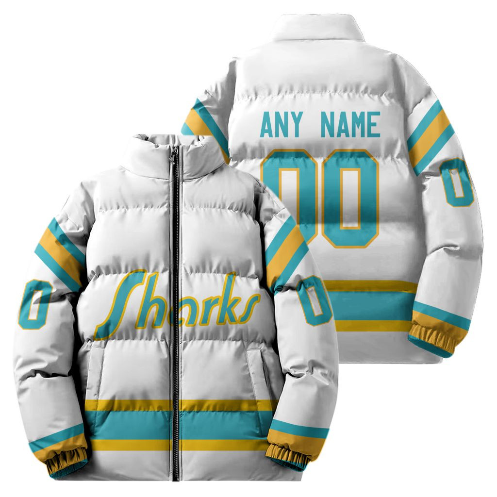 San Jose Sharks Stand Collar Puffer Jacket Custom Name And Number