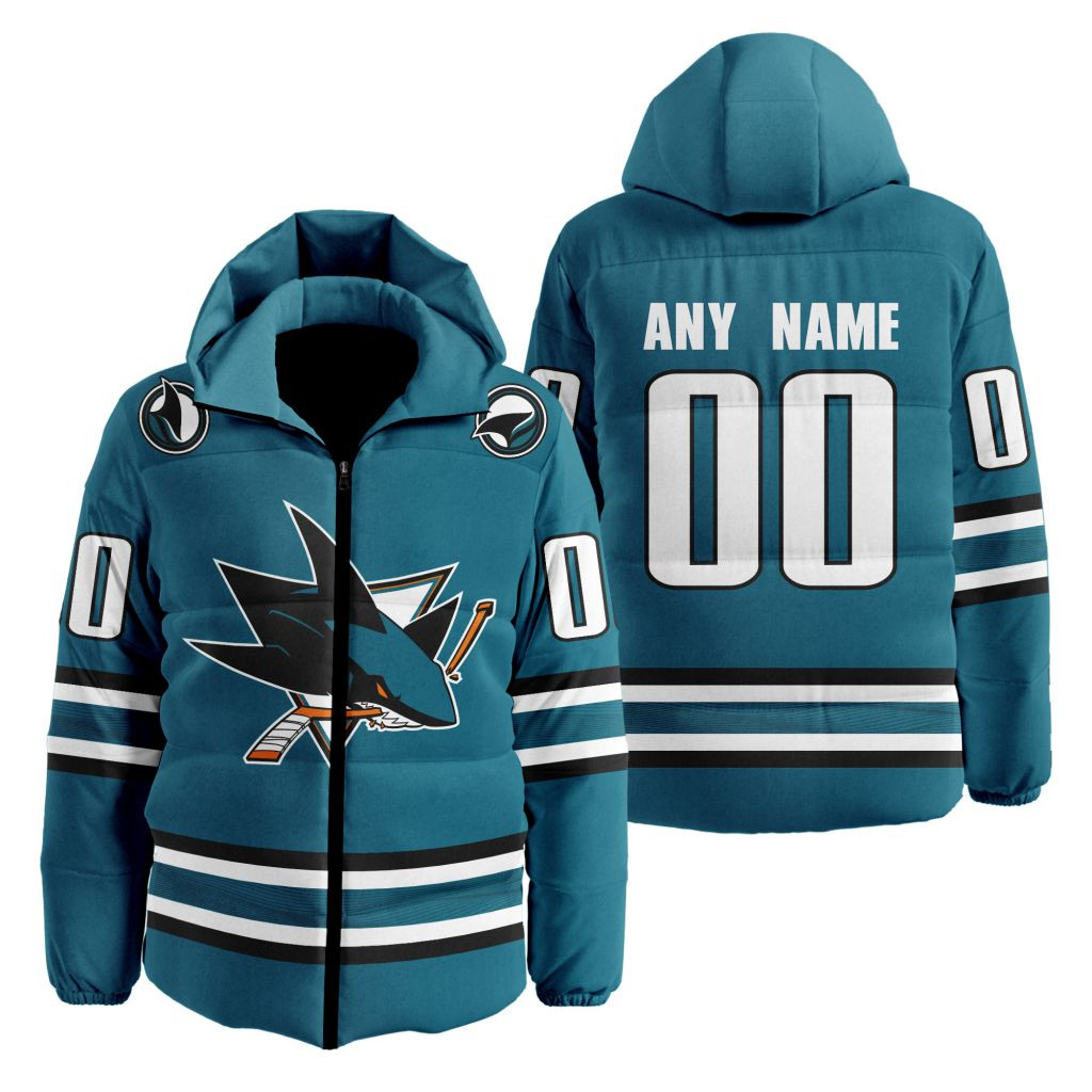 San Jose Sharks Waterproof Thickened Down Jacket Custom Name And Number