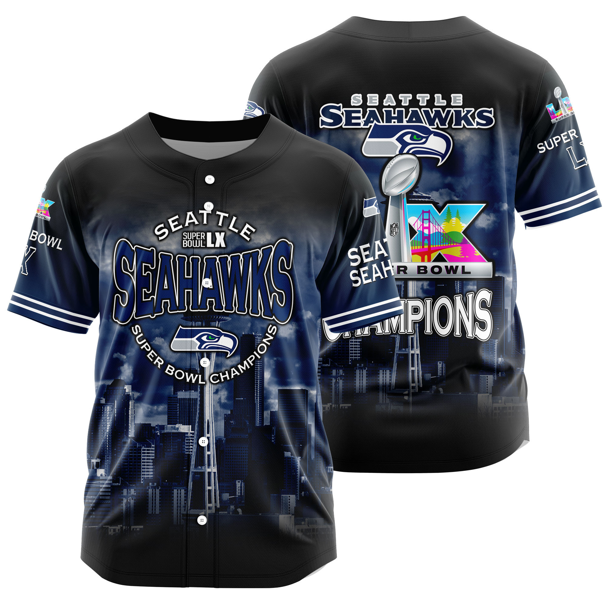 Seattle Seahawks Super Bowl LX Champions Style Baseball Jersey