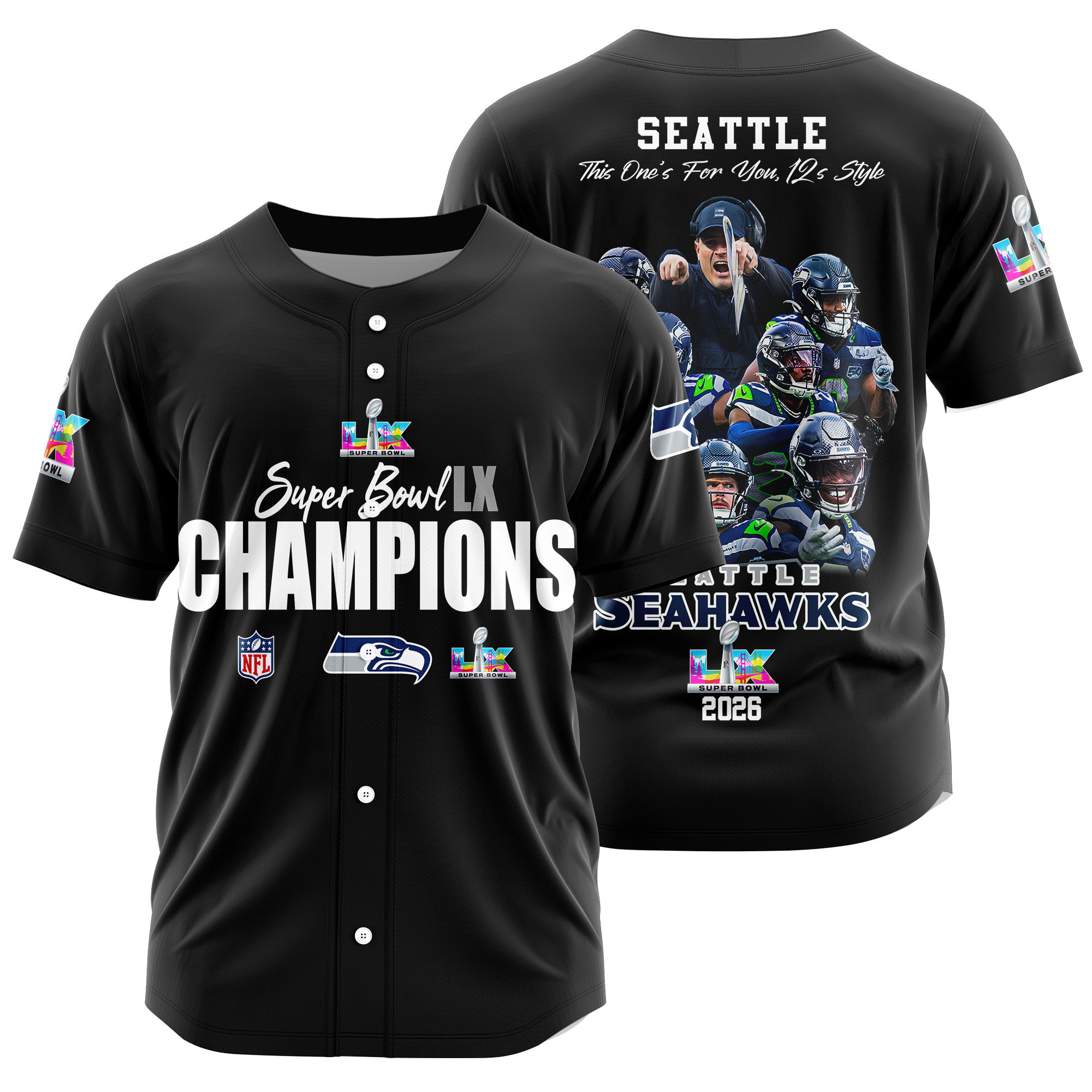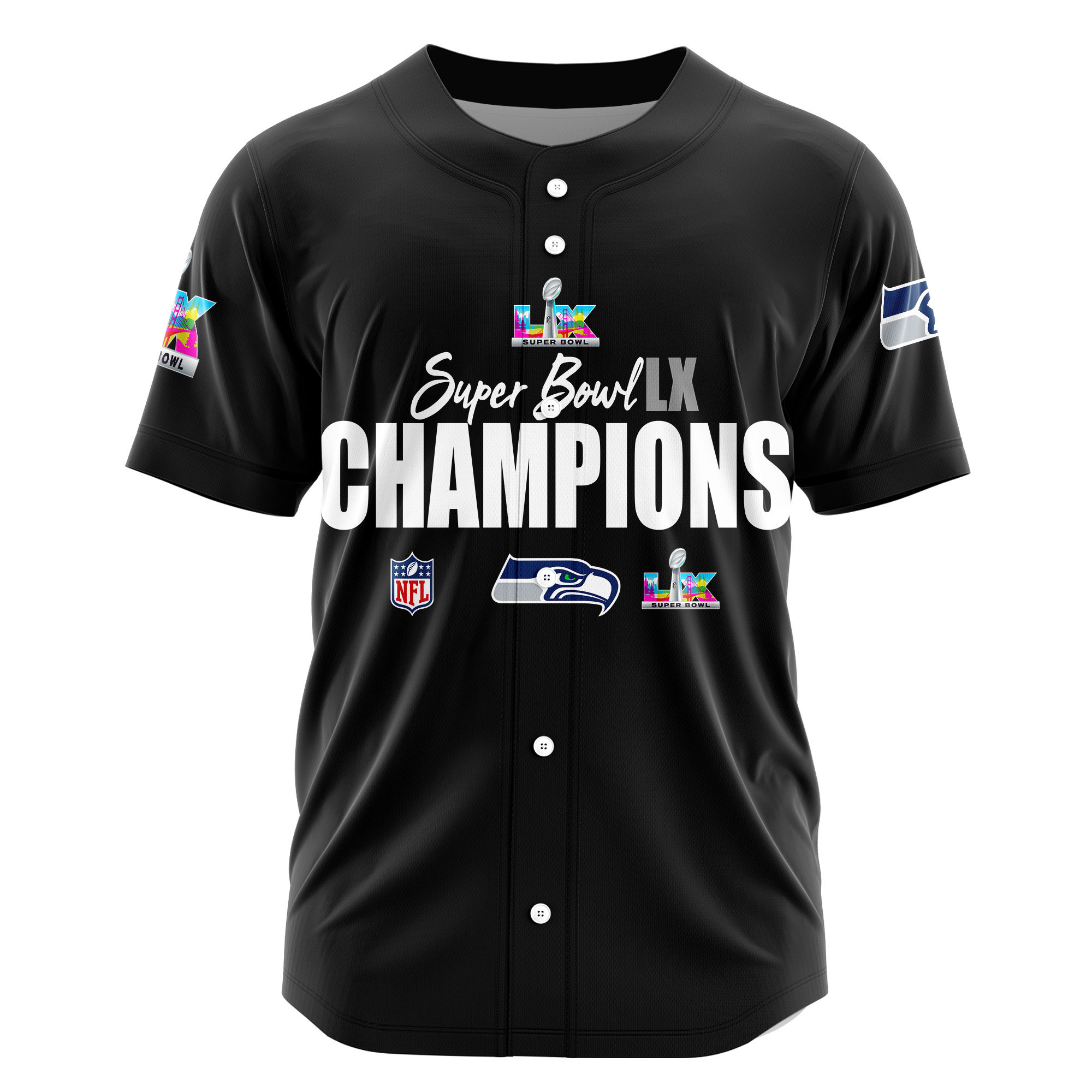 Seattle Seahawks Super Bowl LX Champions Style Baseball Jersey