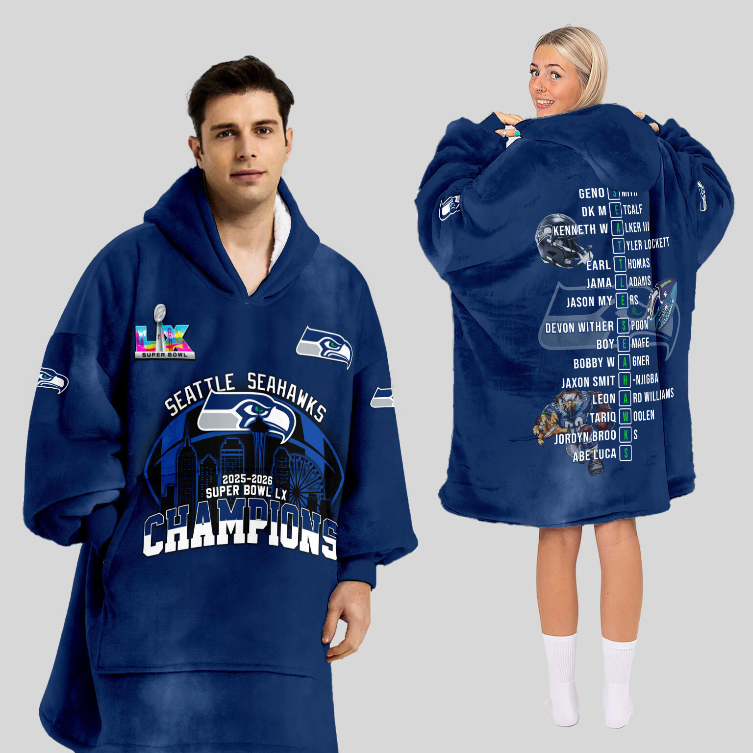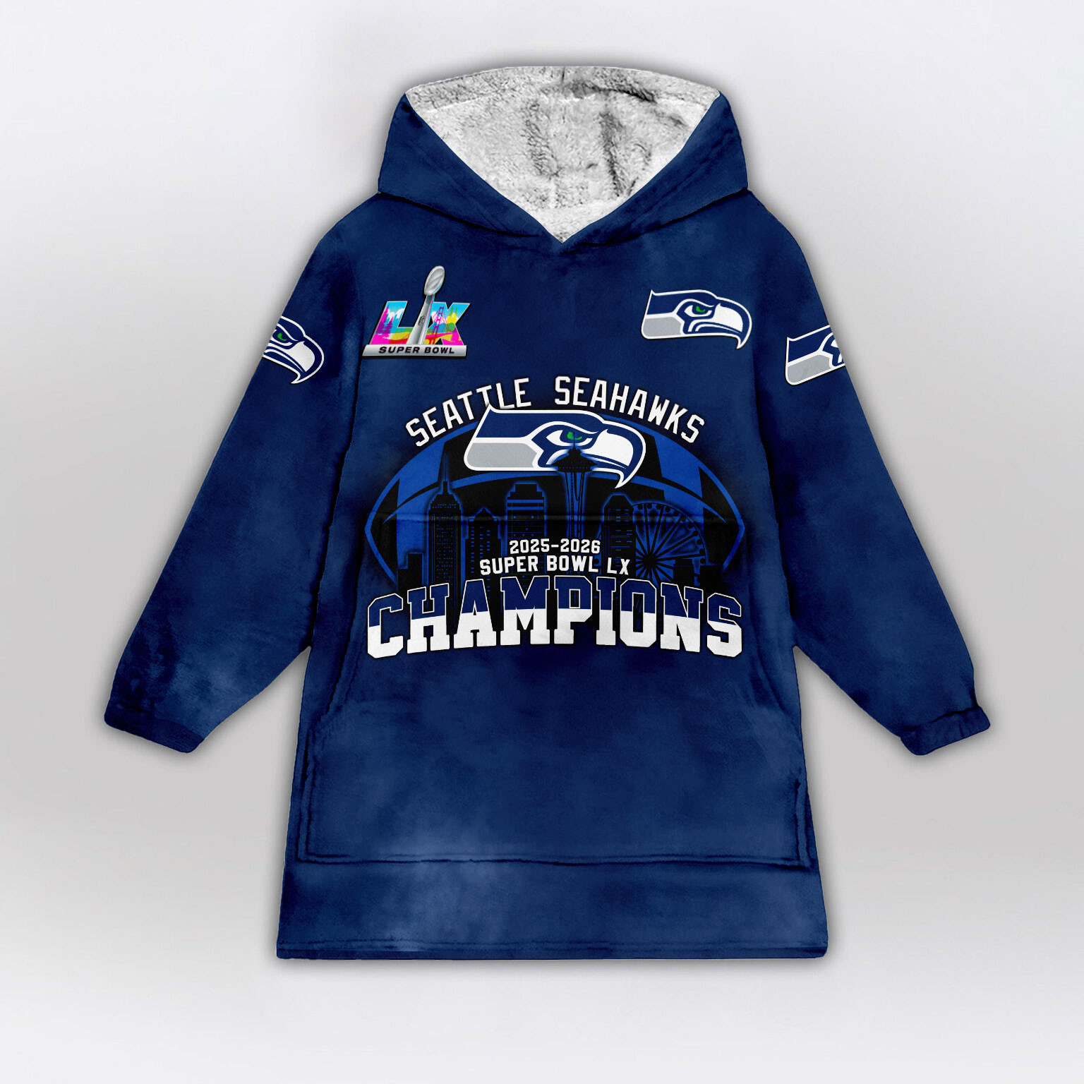 Seattle Seahawks Super Bowl LX Champions Style Blanket Hoodie