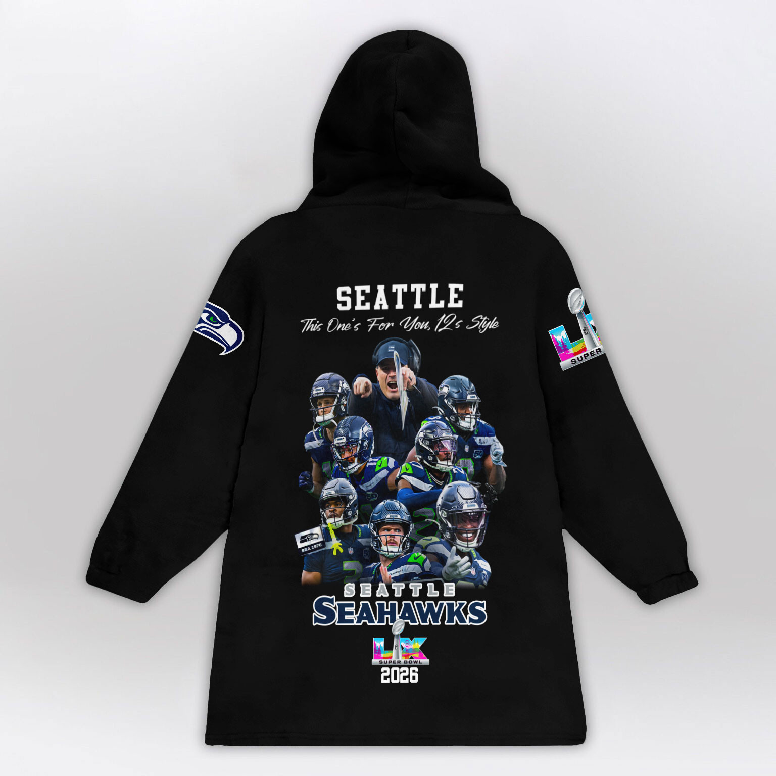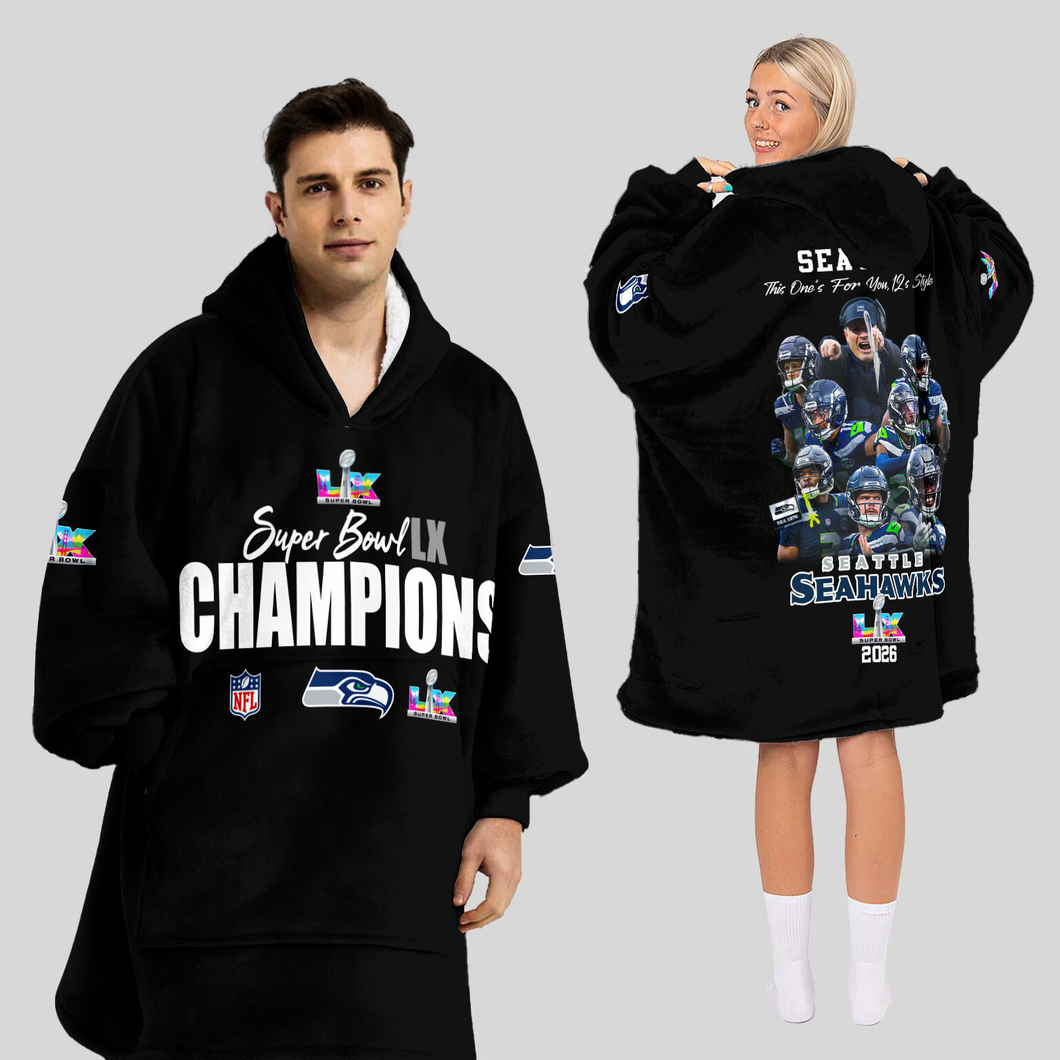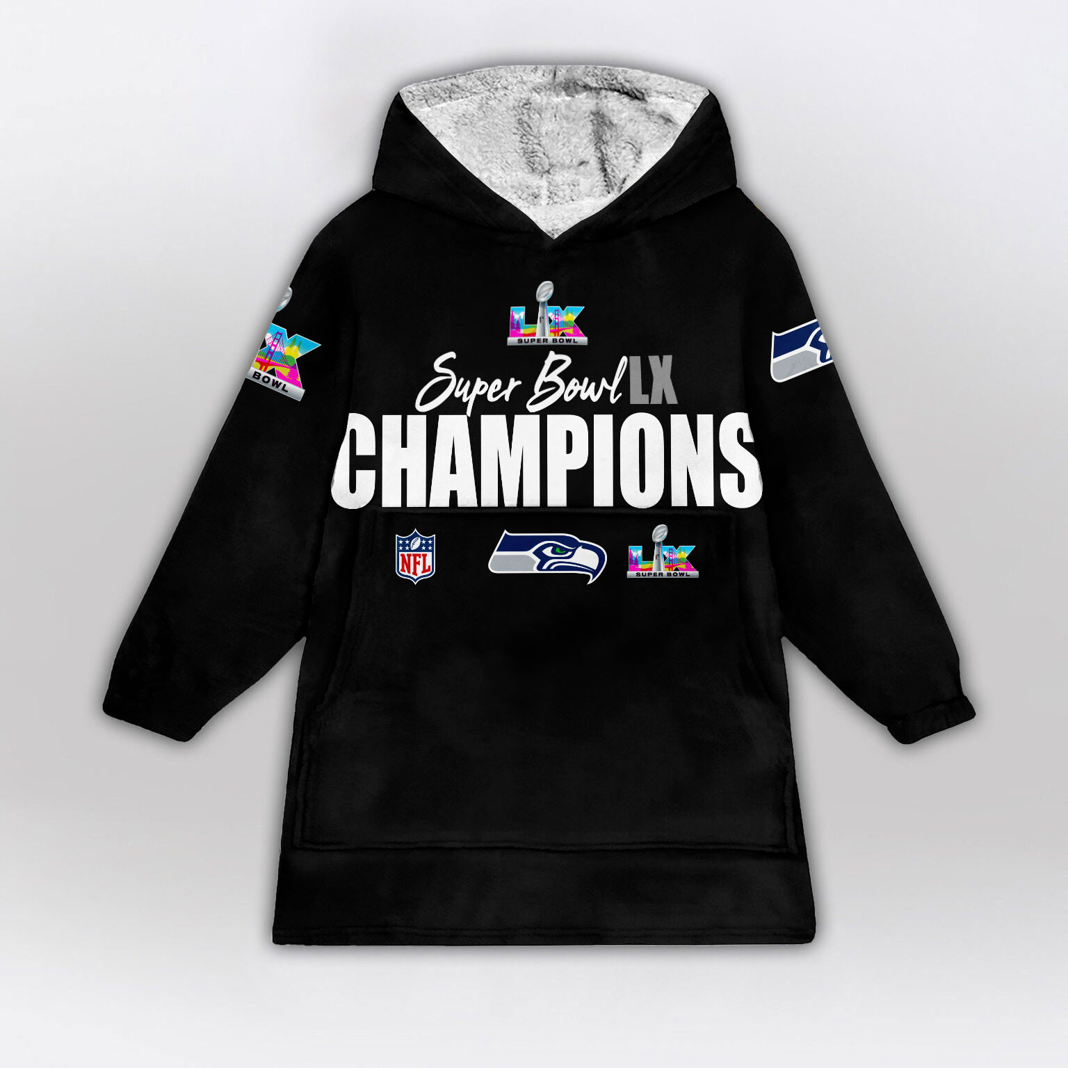 Seattle Seahawks Super Bowl LX Champions Style Blanket Hoodie