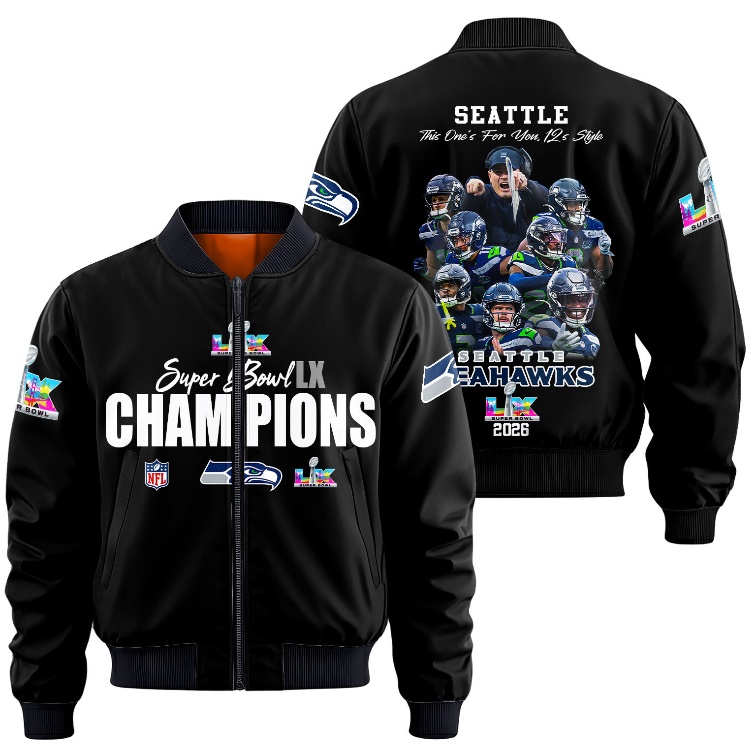 Seattle Seahawks Super Bowl LX Champions Style Bomber Jacket