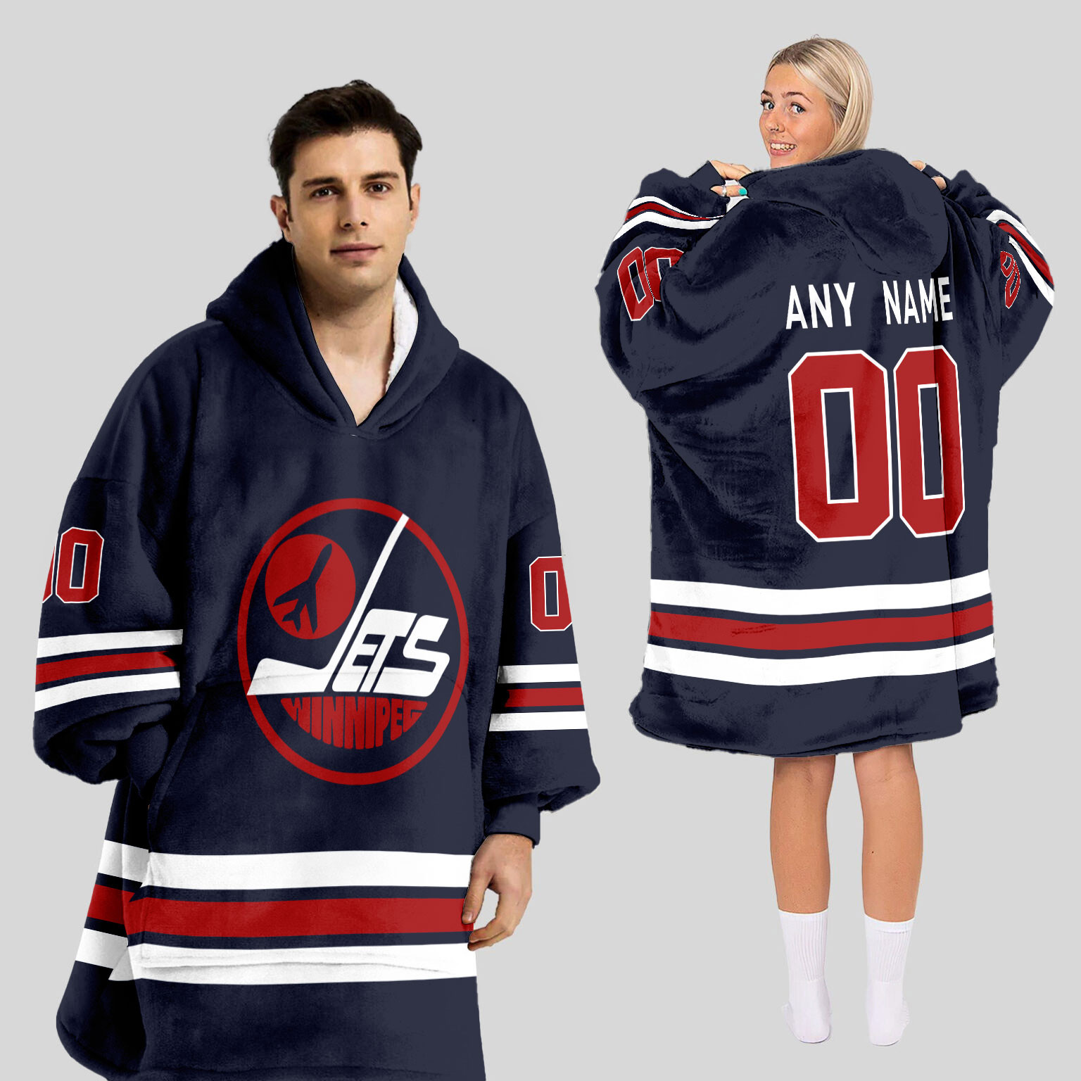 Winnipeg Jets Blanket Hoodie Custom Name And Number